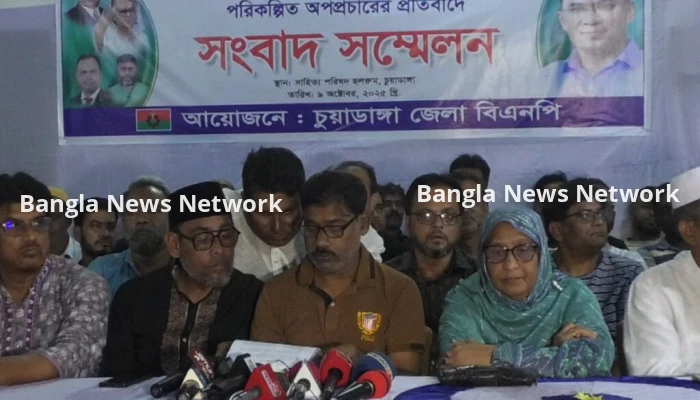 বৃহস্পতিবার (৯ অক্টোবর) চুয়াডাঙ্গা সাহিত্য পরিষদ হলরুমে এ সংবাদ সম্মেলনের আয়োজন করা হয়। সংবাদ সম্মেলনে লিখিত বক্তব্য পাঠ করেন জেলা বিএনপির সাংগঠনিক সম্পাদক সফিকুল ইসলাম পিটু।