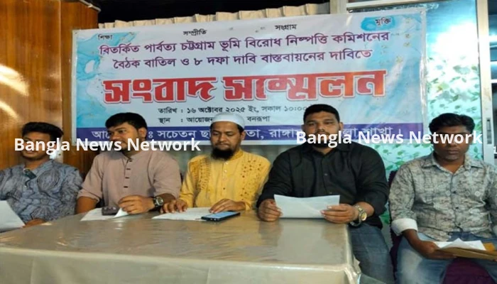 বৃহস্পতিবার (১৬ অক্টোবর) সকাল ১১টায় রাঙ্গামাটি শহরের এক রেস্তোরাঁয় আয়োজিত সংবাদ সম্মেলনে এই কর্মসূচি ঘোষণা করেন পিসিসিপি রাঙ্গামাটি জেলা সভাপতি মো. তাজুল ইসলাম তাজ।
